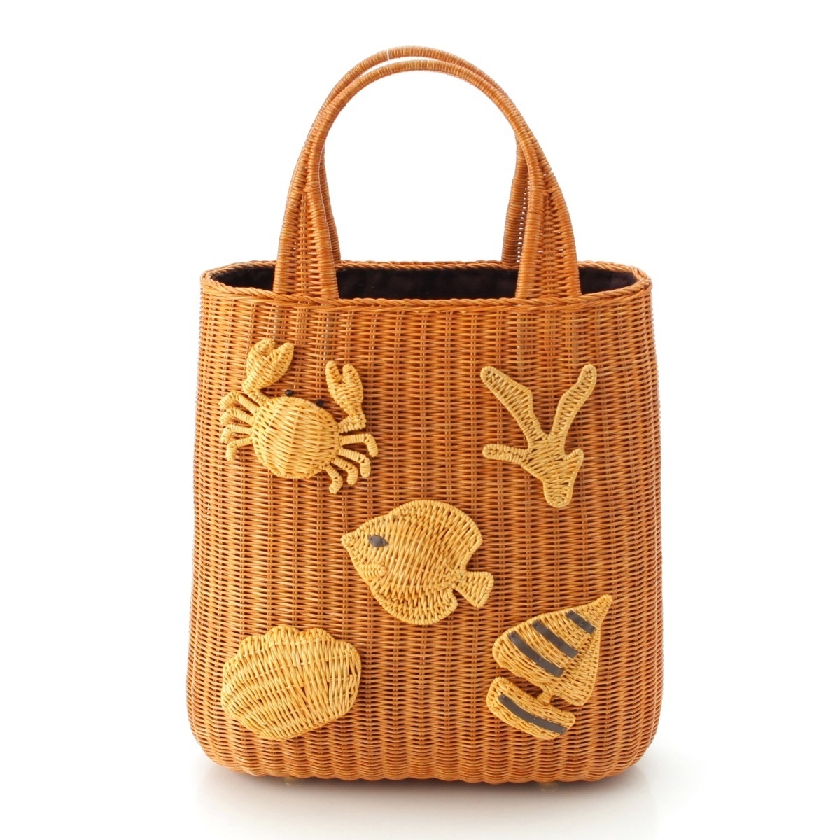 - セブンテン バイ ミホカワヒト ラタン マリンモチーフ 海の生き物 ハンドバッグ ブラウン【中古】