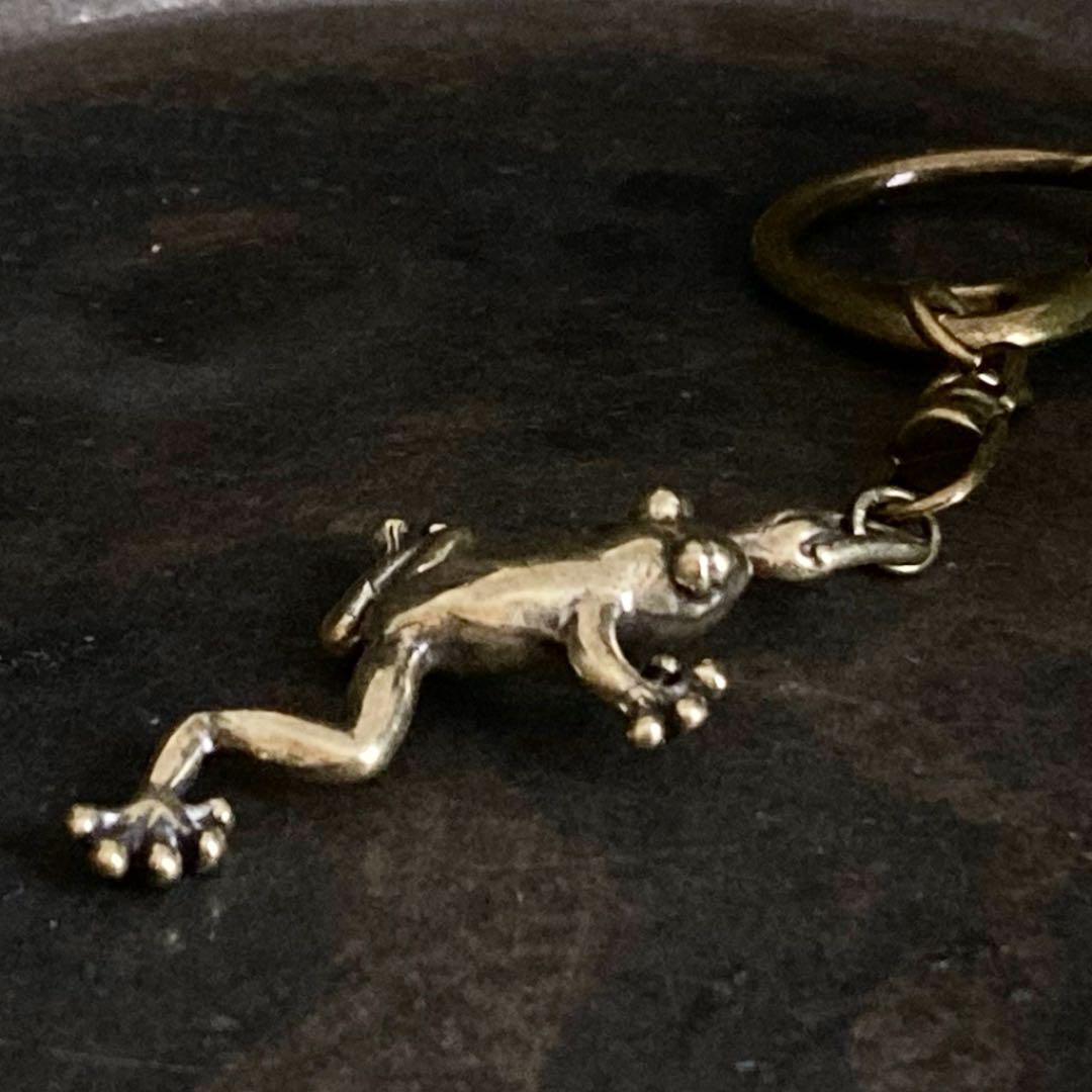 > 097 真鍮 キーホルダー 蛙 カエル 手 ビンテージ 風水 金運 開運 レトロ アンティーク 真鍮製 チャーム アクセサリー パーツ ハンドメイド