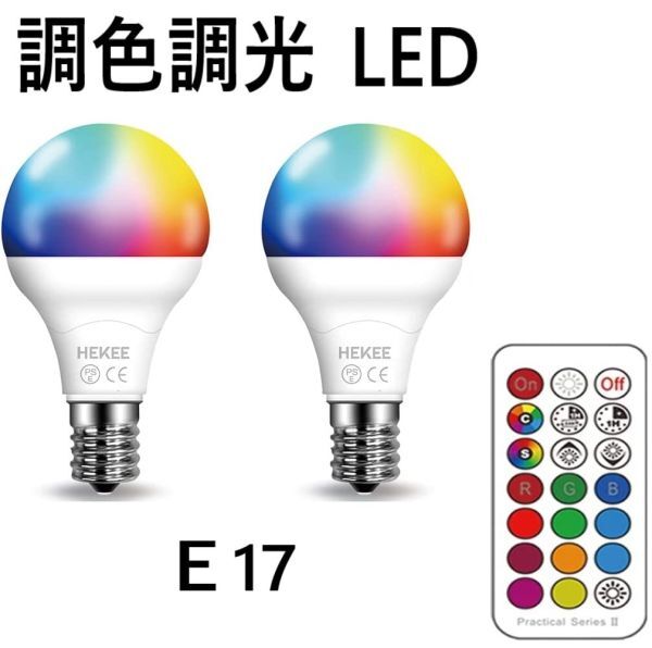 - 調色調光タイマー付きLED電球 2個セット E17 口金 550LM 50W相当 電球色2700K リモコン ★鄭5