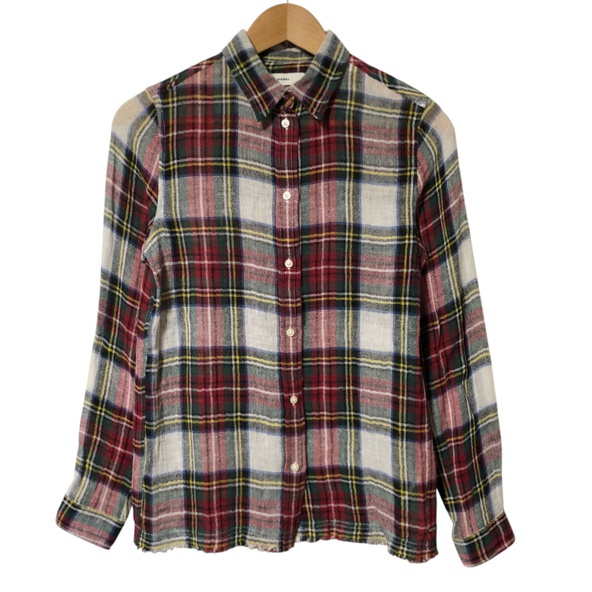 - DIESEL ディーゼル チェック シャツ 長袖 リネン コットン XS 赤 白 緑 レディース A31