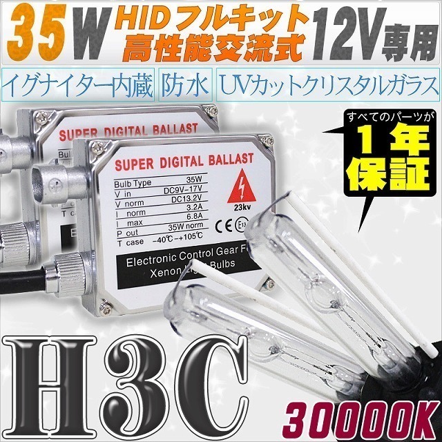 - 高性能 HIDキット 35W H3C 30000K 【交流式バラスト&クリスタルガラスバーナー】