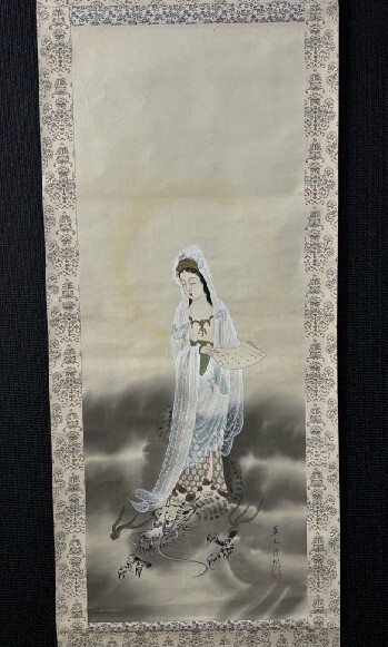 - 【模写】仏画 英仙「龍上白衣観音図」 絹本 検) 佛画/仏教美術/如来 龍虎 古玩/菩薩/仏像/曼陀羅 書/教典/掛軸/墨跡/書画