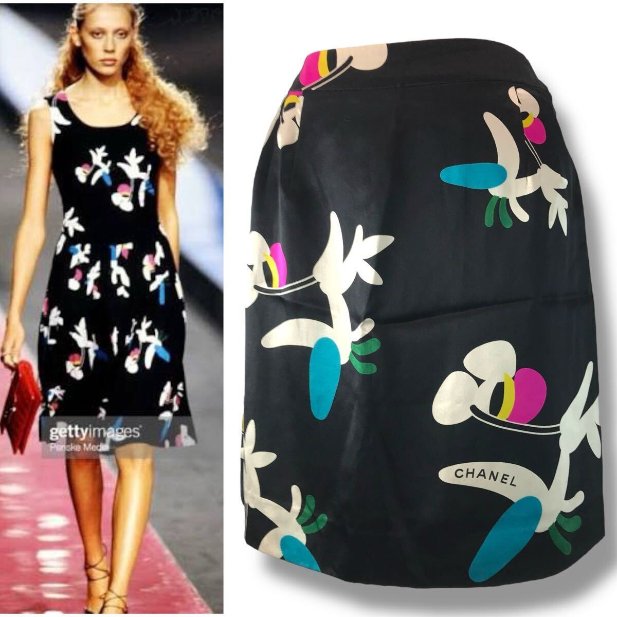 > c30 レア 希少 CHANEL 00T シャネル シルク 柄 スカート Vintage ブラック P15393 V08612 フランス製 36 正規品 ボトムス レディース