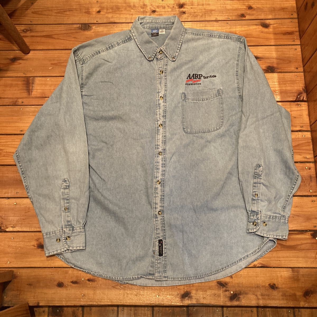 - PORT&COMPANY デニムシャツ ダンガリーシャツ ボタンダウンシャツ 長袖シャツ 刺繍 2XLサイズ アメリカ古着 USA古着