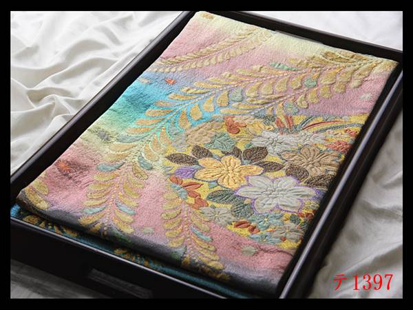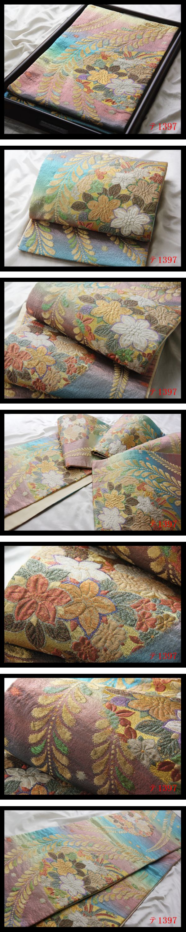 - 蔵【テ1397】西陣逸品 ふくれ織 振袖可 辻ヶ花紋 幽玄に咲き誇る帯姿 正絹純金糸六通高級美術袋帯◇検◇簪着物名古屋帯和装小物帯締め