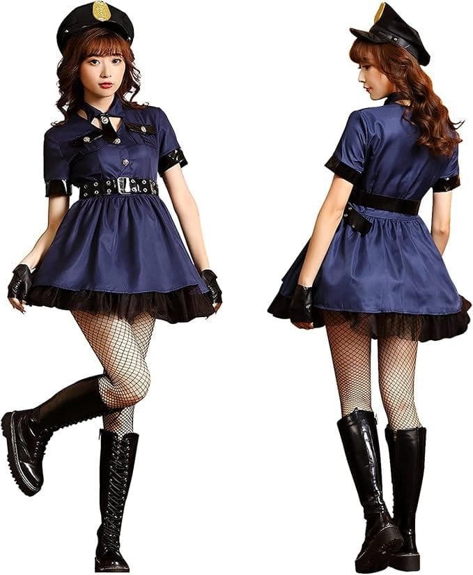 > ハロウィン【L】ミニスカポリスセット コスプレ ネイビー セクシー 可愛い ワンピース レディース 婦警 学園祭 文化祭 948