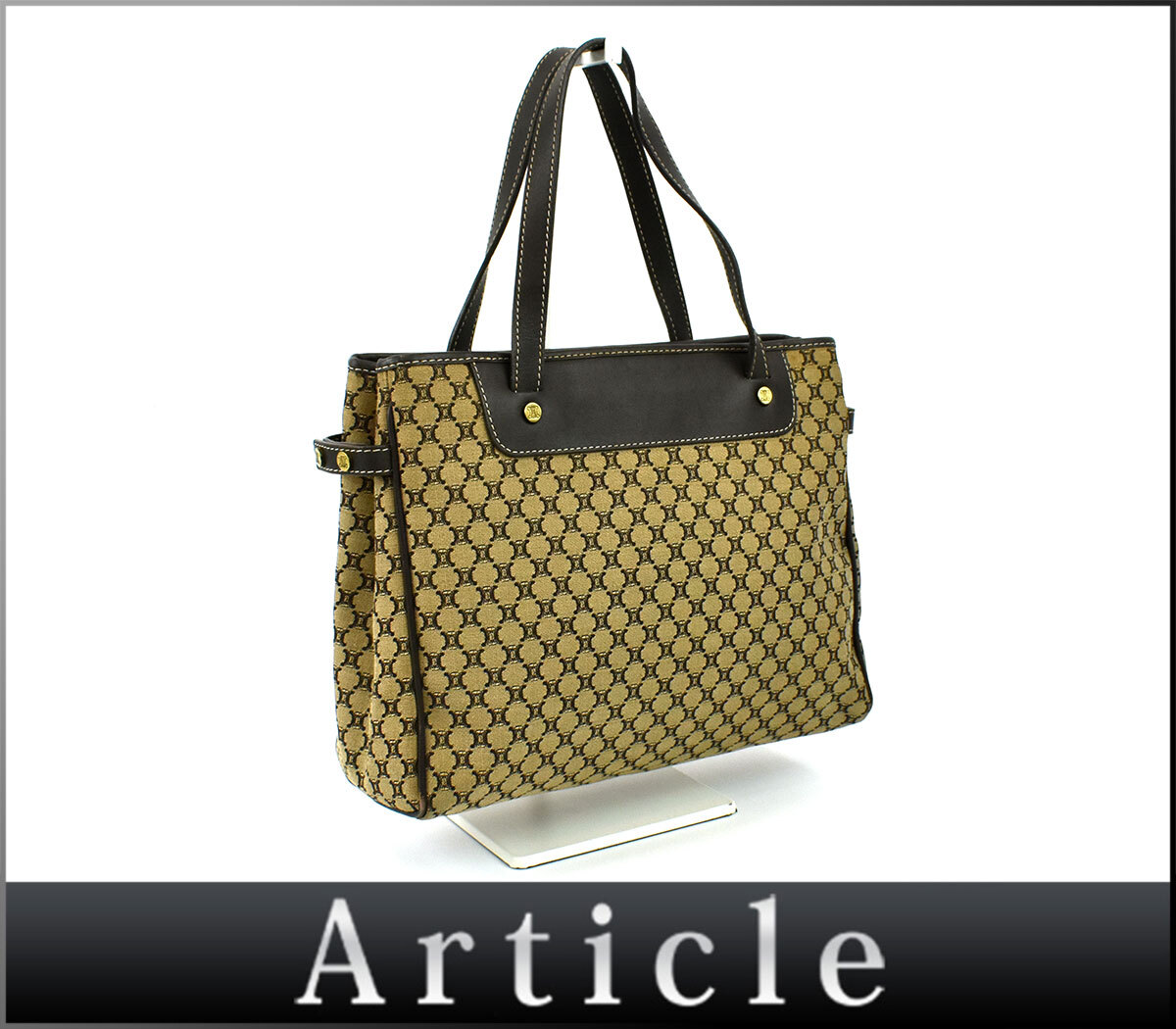 > 235845◇ CELINE セリーヌ マカダム ハンドバッグ トートバッグ ミニトート バッグ キャンバス レザー ベージュ ブラウン レディース/ B