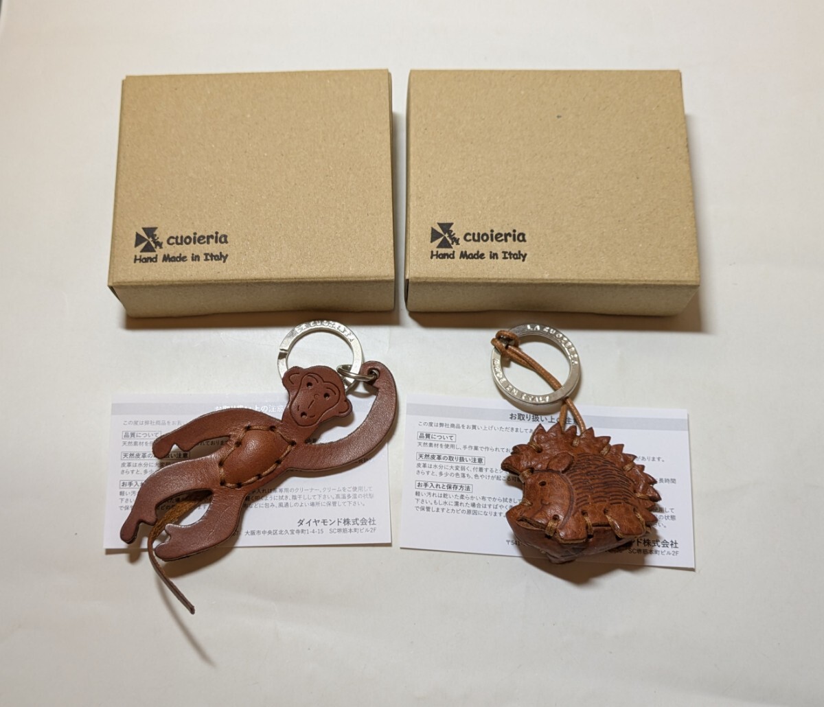 - 4706送料200円 La cuoieria キーホルダー 革 ラ・クオイエリア 本革 どうぶつ ハリネズミ サル セット キーリング レザー ラクオイエリア