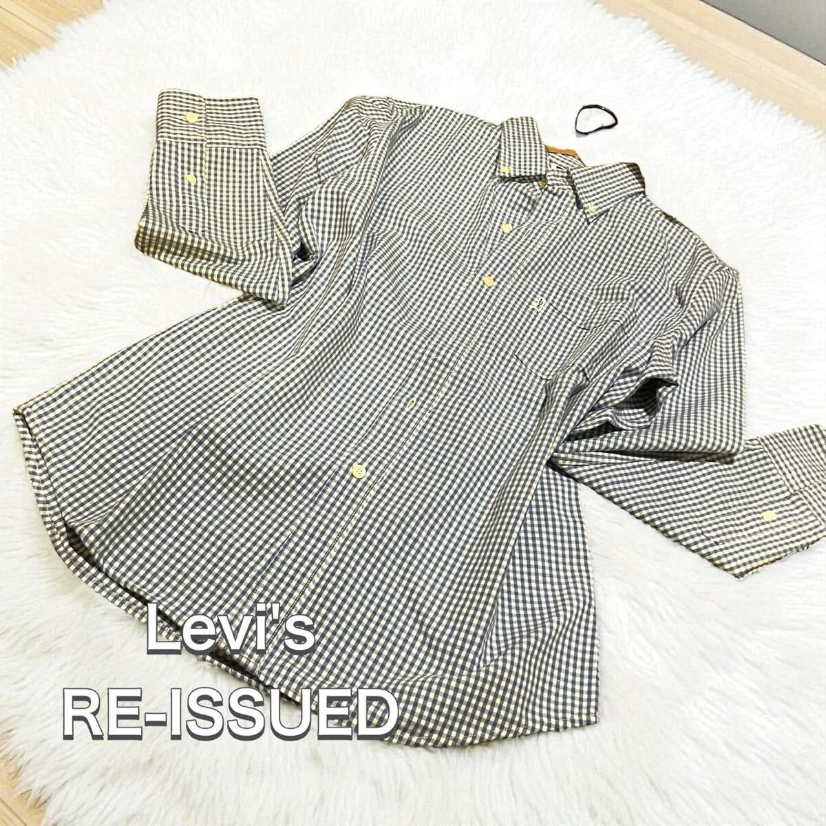 > Levi’s RE-ISSUED チェックシャツ メンズL リーバイス チェック シャツ 春夏 長袖 ブルー ホワイト Lサイズ