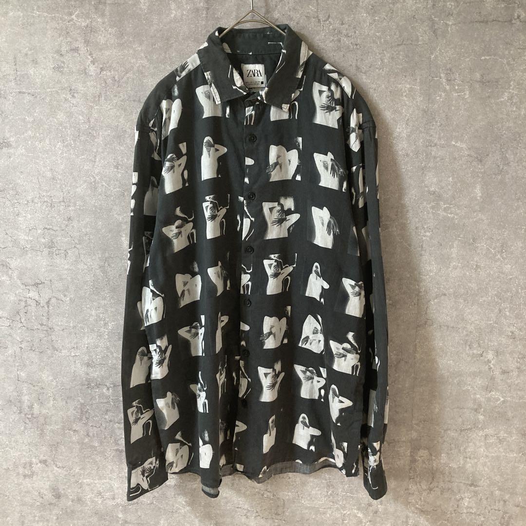 - ZARA モノトーンアート柄シャツ 長袖 コットン ゆったり Lサイズ