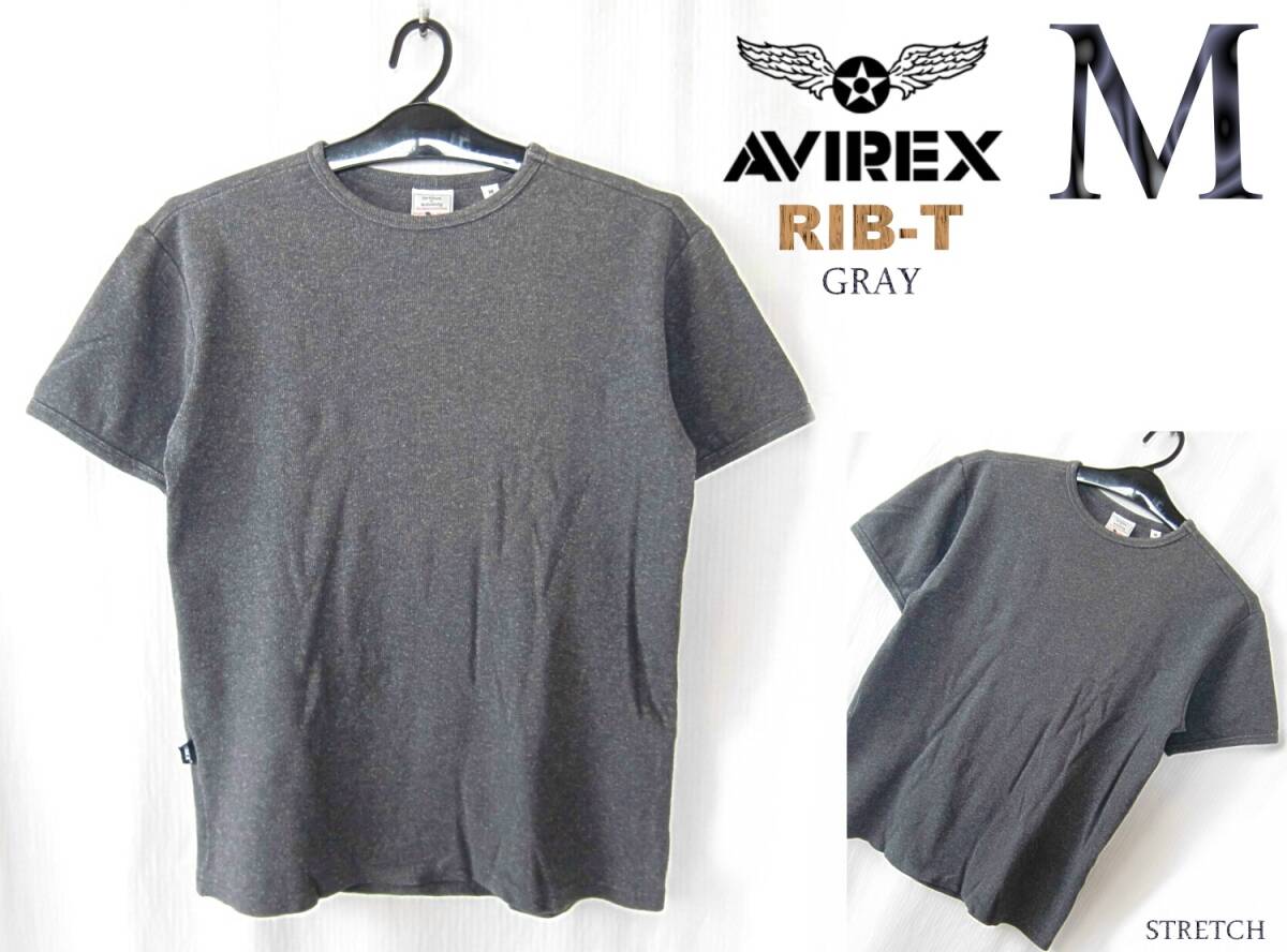 - 送料¥185・AVIREX【半袖リブT】M / DARK GRAY【管33-3】