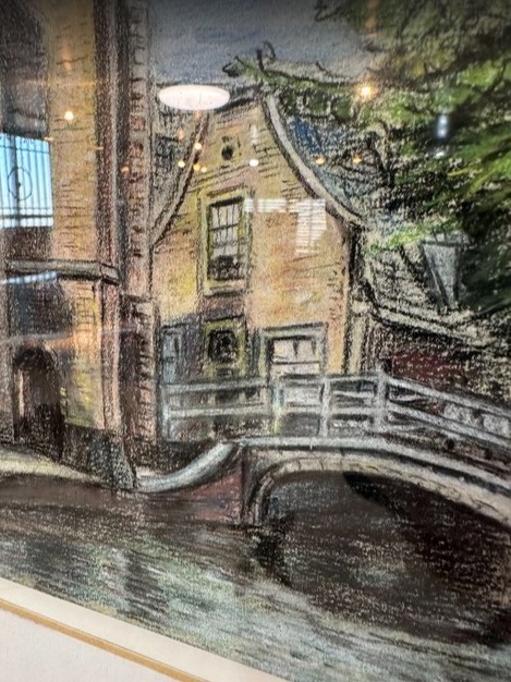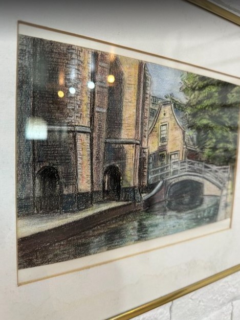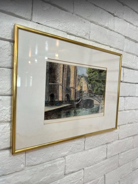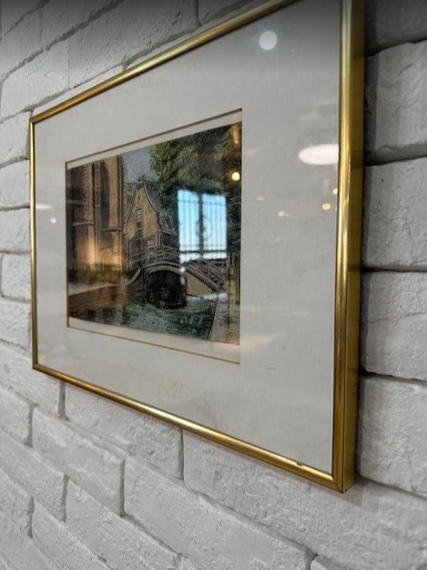 - 4828 橋の絵 フランス買い付け品 アンティーク 風景画 自然 ヨーロッパ フランス ベルギー 額縁 フレーム 40.5cm bbb