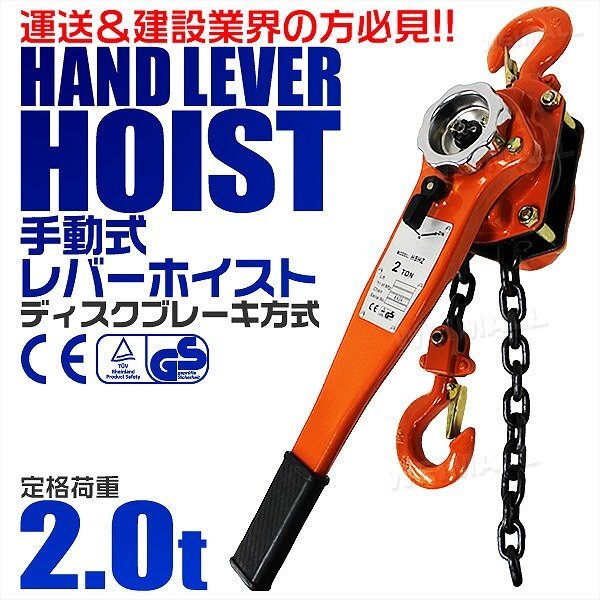 - 新品 レバーホイスト 定格荷重2t 2000kg チェーンホイスト CE TUV認証済 荷締め機 ジャッキ ガッチャ チェーン ブロック 玉掛け 荷揚げ