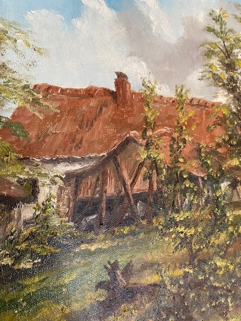 - 5228 ヨーロッパ買い付け品 絵画 風景画 油絵 ビンテージ アンティーク インテリア 高さ40 幅50 奥行2cm bbb