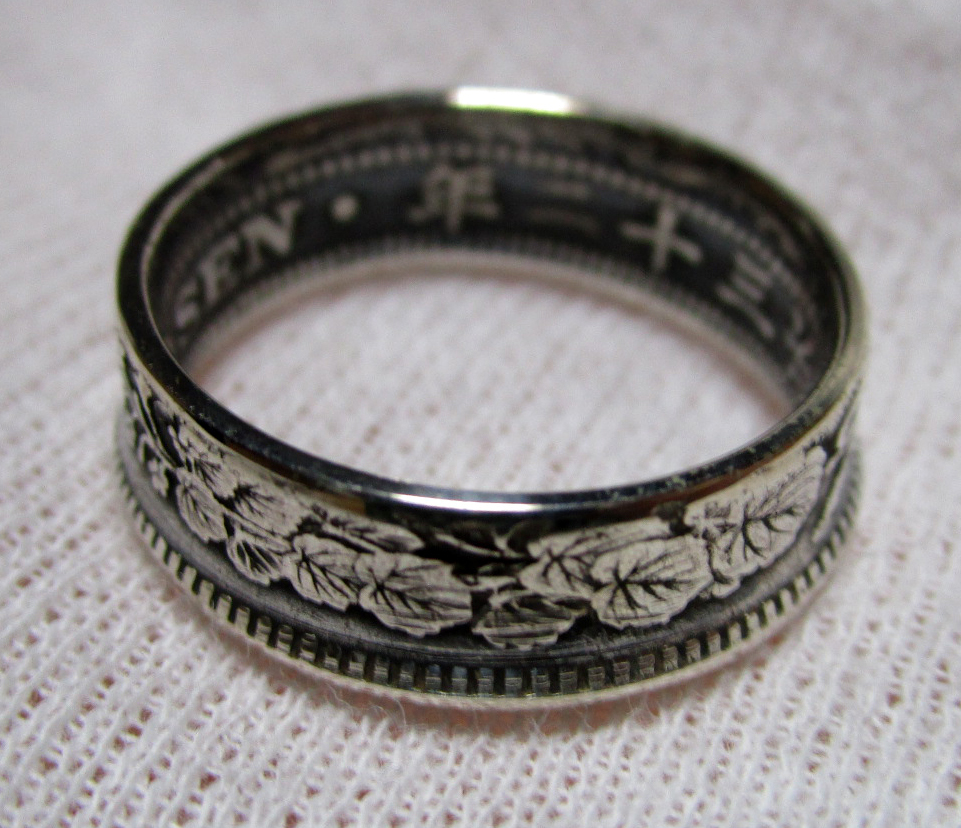 - 【s327】 コインリング☆竜20銭 銀貨☆ハンドメイド 13.5号 明治三十二年 傷あり