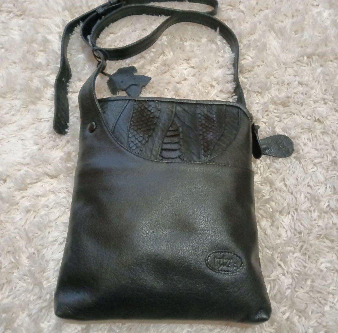 - 未使用 IBIZA イビサ 象のチャーム レザー ショルダーバッグ ブラック 黒 ブラック イビザ 斜め掛け