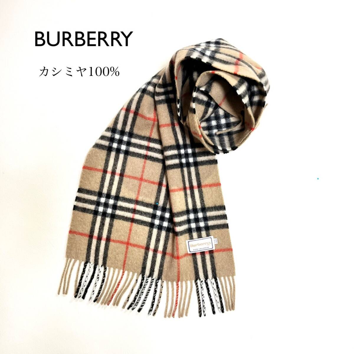 > ci100 BURBERRY ピュアカシミヤ100% ノバチェック マフラー フリンジ 総柄 チェック柄