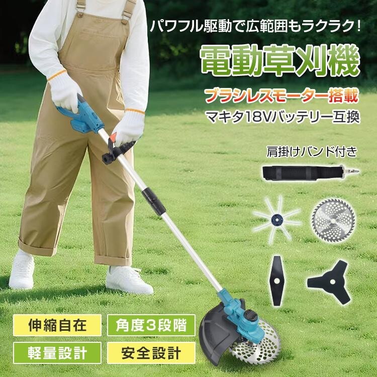 - 送料無料 草刈り機 充電式 電動草刈機 草刈機 電動 芝刈り機 18v 刈払機 草刈り コードレス ブラシレス バッテリー 長さ 角度調整 gd011