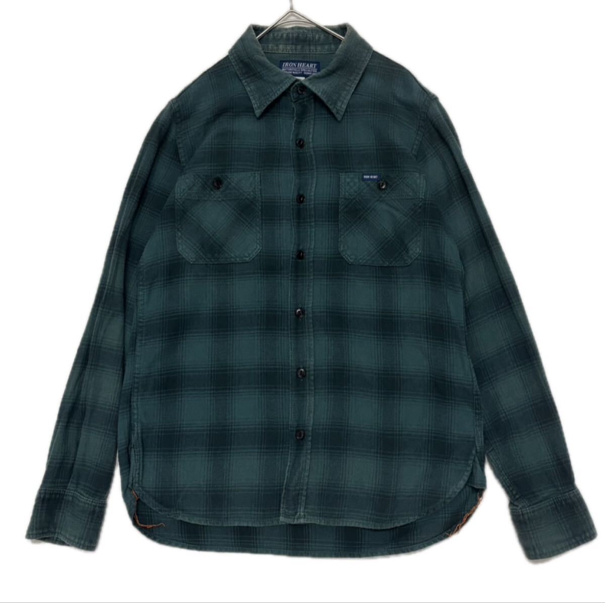 - 【 IRON HEART 】 オンブレ チェック ネル シャツ S グリーン 緑 アイアンハート 日本製 S ワーク