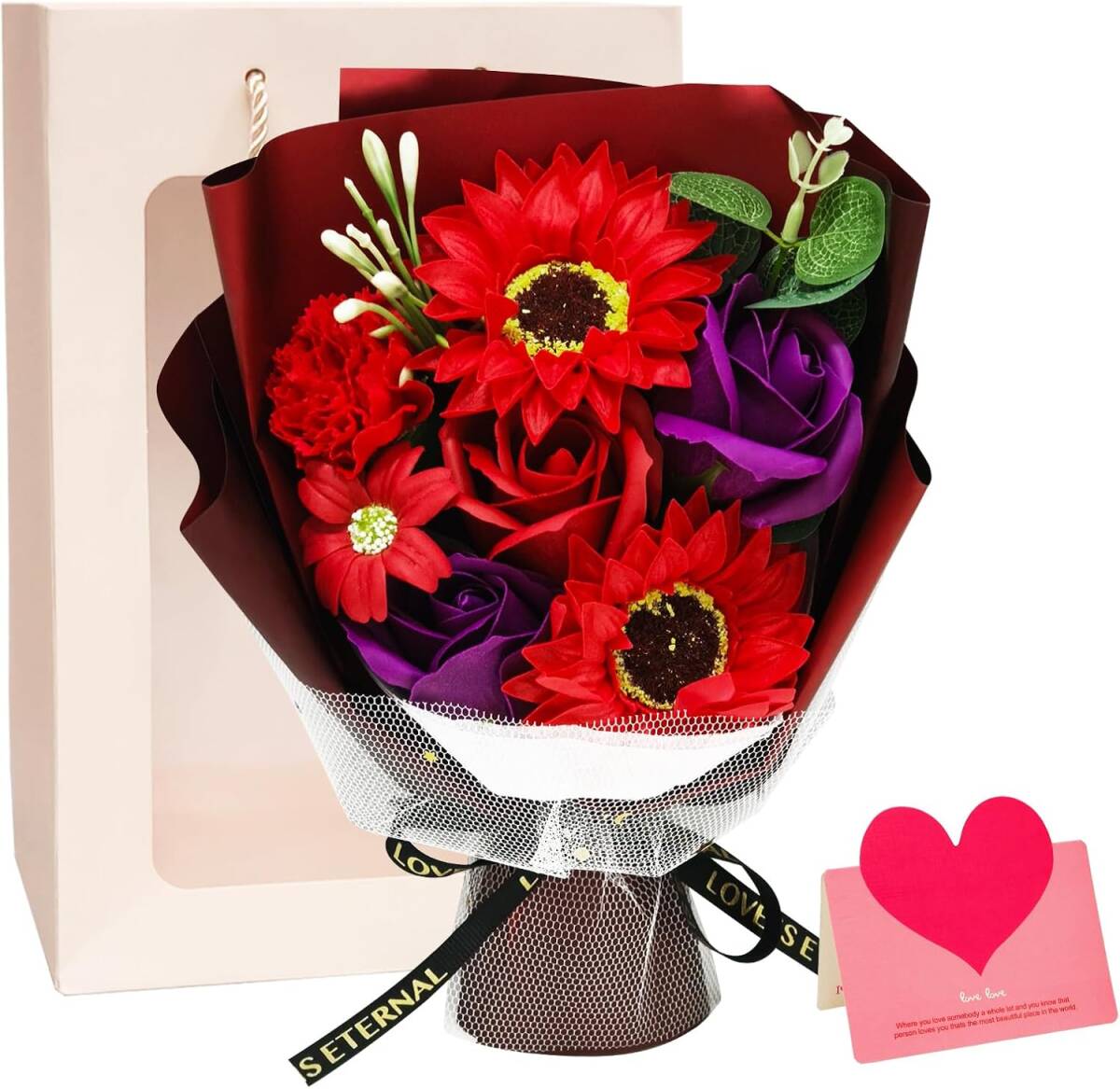 - 花束 ソープフラワー ヒマワリ 薔薇 誕生日 ギフト シャボンフラワー ブーケ
