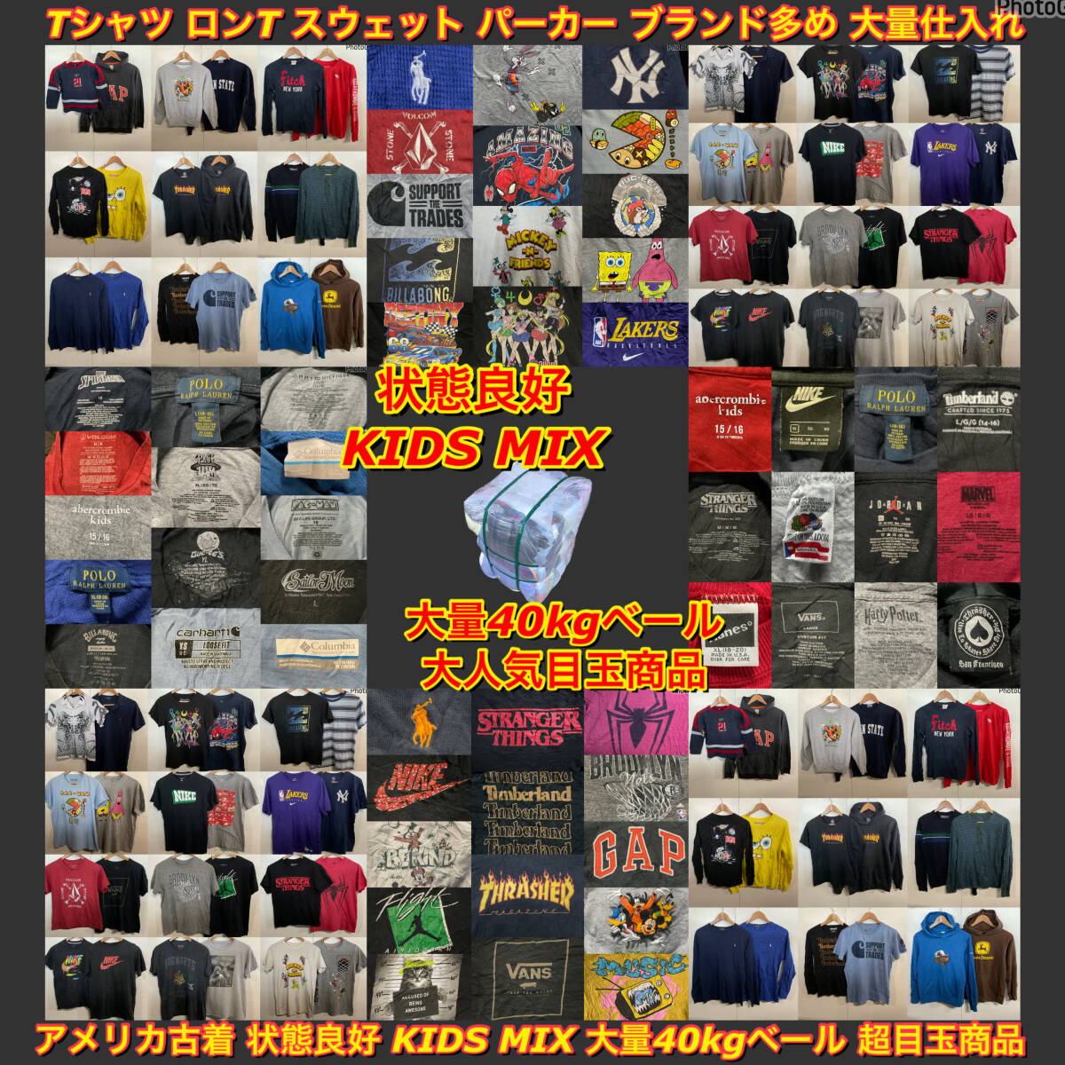 > 【T1520】★状態良好★ アメリカ古着卸オススメKIDS MIX大量40kgベール大人気目玉商品 ブランド多めTシャツスウェットパーカーロンT仕入れ