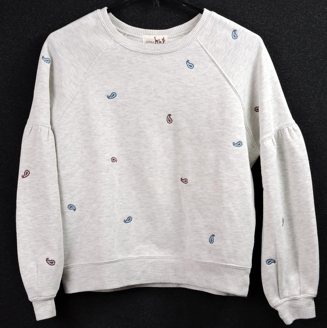 > 値下げ☆USED☆ チチカカ スウェットプルオーバー ペイズリー柄 オートミール 裏起毛 ボリューム袖 秋冬 レディース