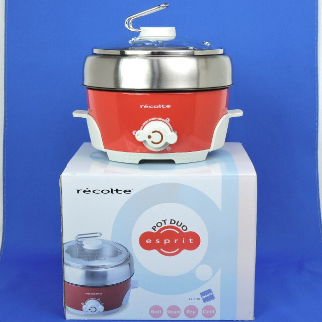- ●【中古/検品済】レコルト ポット デュオ エスプリ レッド 箱・説明書/レシピ有 生産終了 煮る・焼く・蒸す・揚げる 少人数 一人暮らし