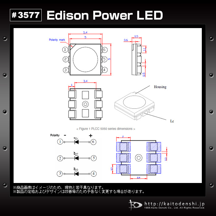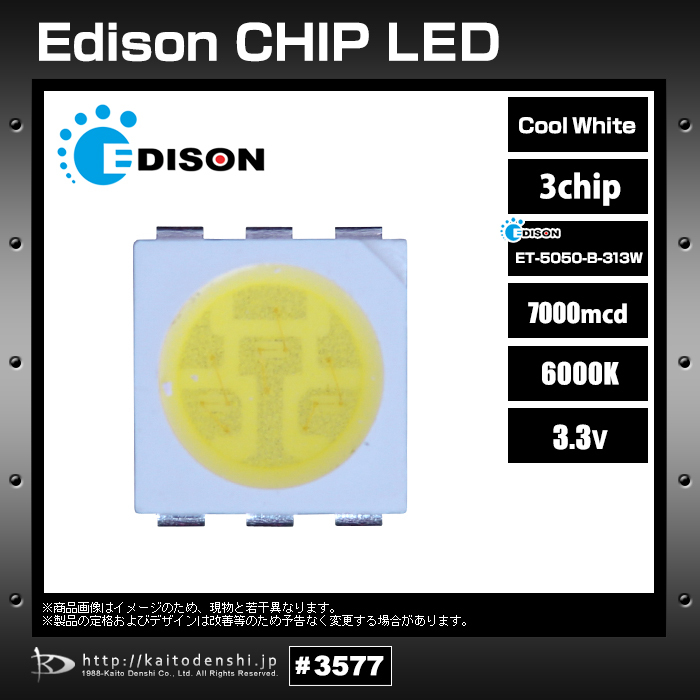 - LEDチップ SMD 5050 3チップ EDISON クールホワイト CoolWhite 3.3V 6000K 7000mcd ET-5050W-3F1W 50個