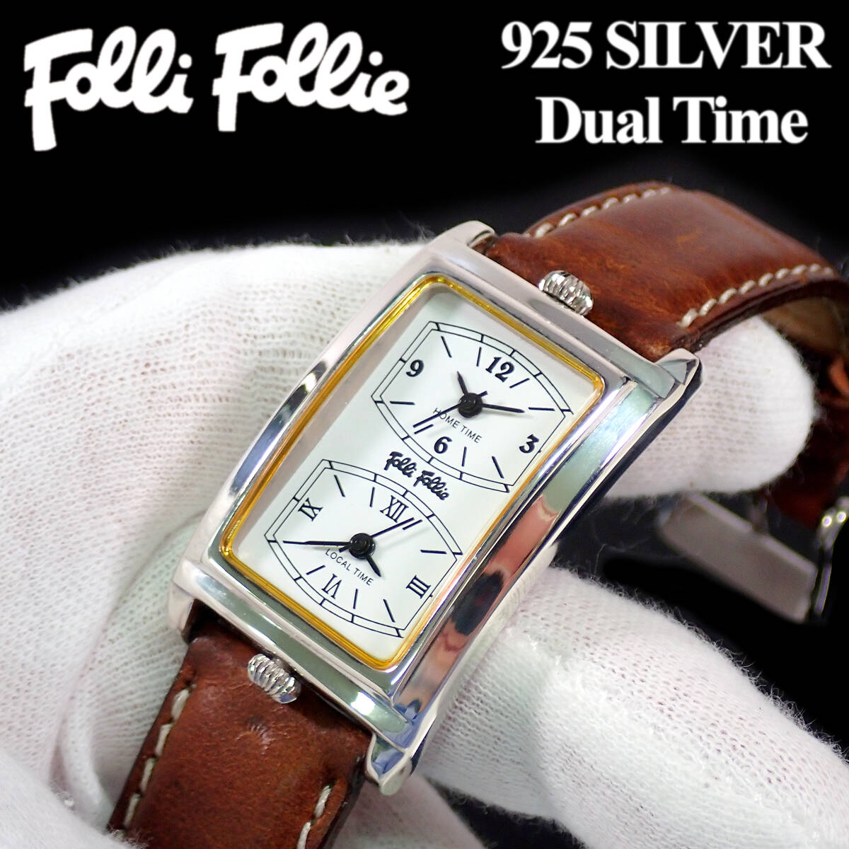 - フォリフォリ DUAL TIME 14M 925シルバー/ホワイト文字盤 点検動作品 FolliFollie Dual 925 SILVER