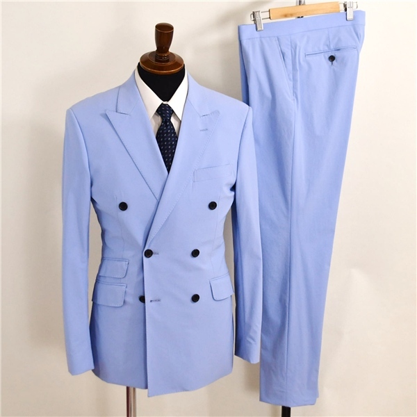 ・春秋対応。6つボタンダブル。袖口4つ釦本切羽。総裏地仕上げ。サイドベンツ。チェンジポケット。フラップポケット。ネーム刺繍なし(素材表記タグにネームの印字あり)。