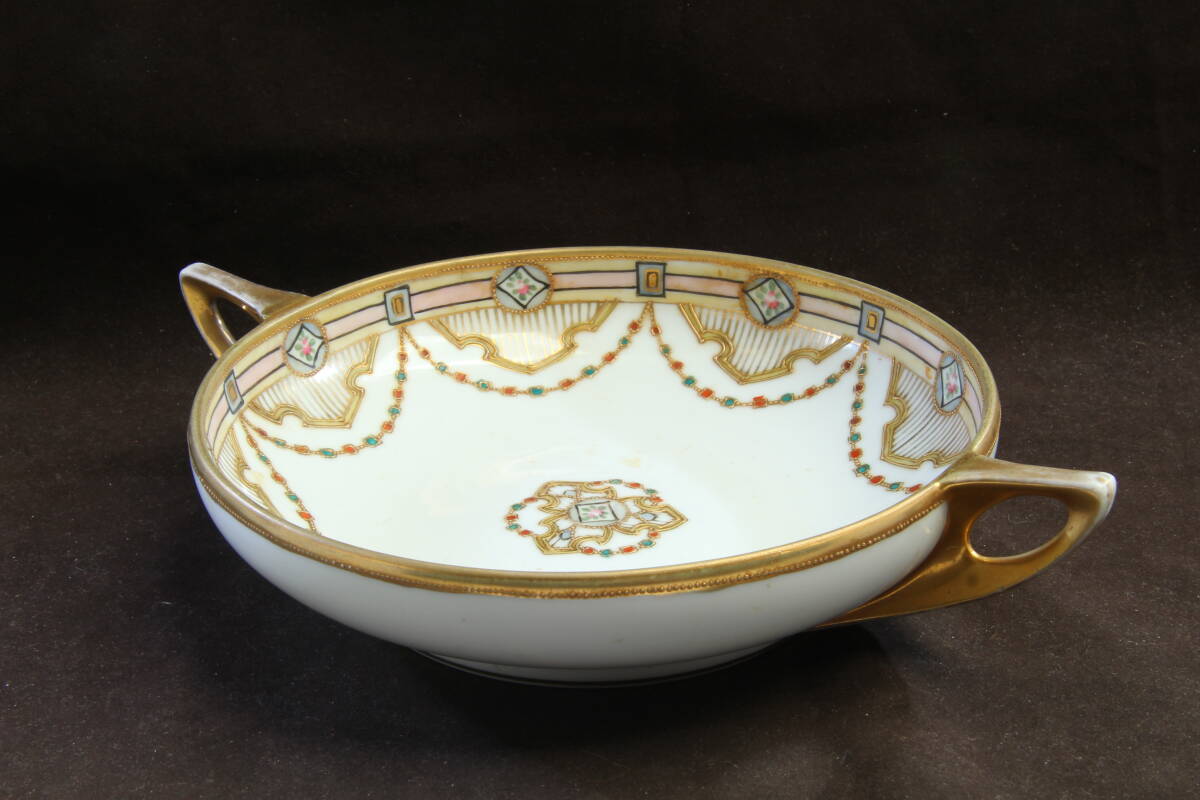 > 3165 オールドノリタケ アールデコディッシュ(ハンドル付) RC-NIPPON 明治 華の絵柄と金彩の縁飾り