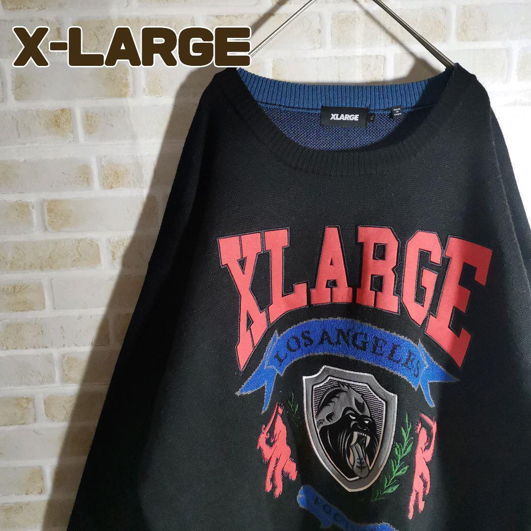 - 希少 X-LARGE エクストララージ ニット セーター 黒 刺繍