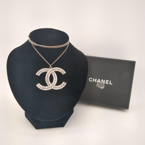 > シャネル ネックレス ブランドジュエリー ココマーク ラインストーン クリア×シルバー CHANEL 箱付 シリアル不鮮明 ◆2005