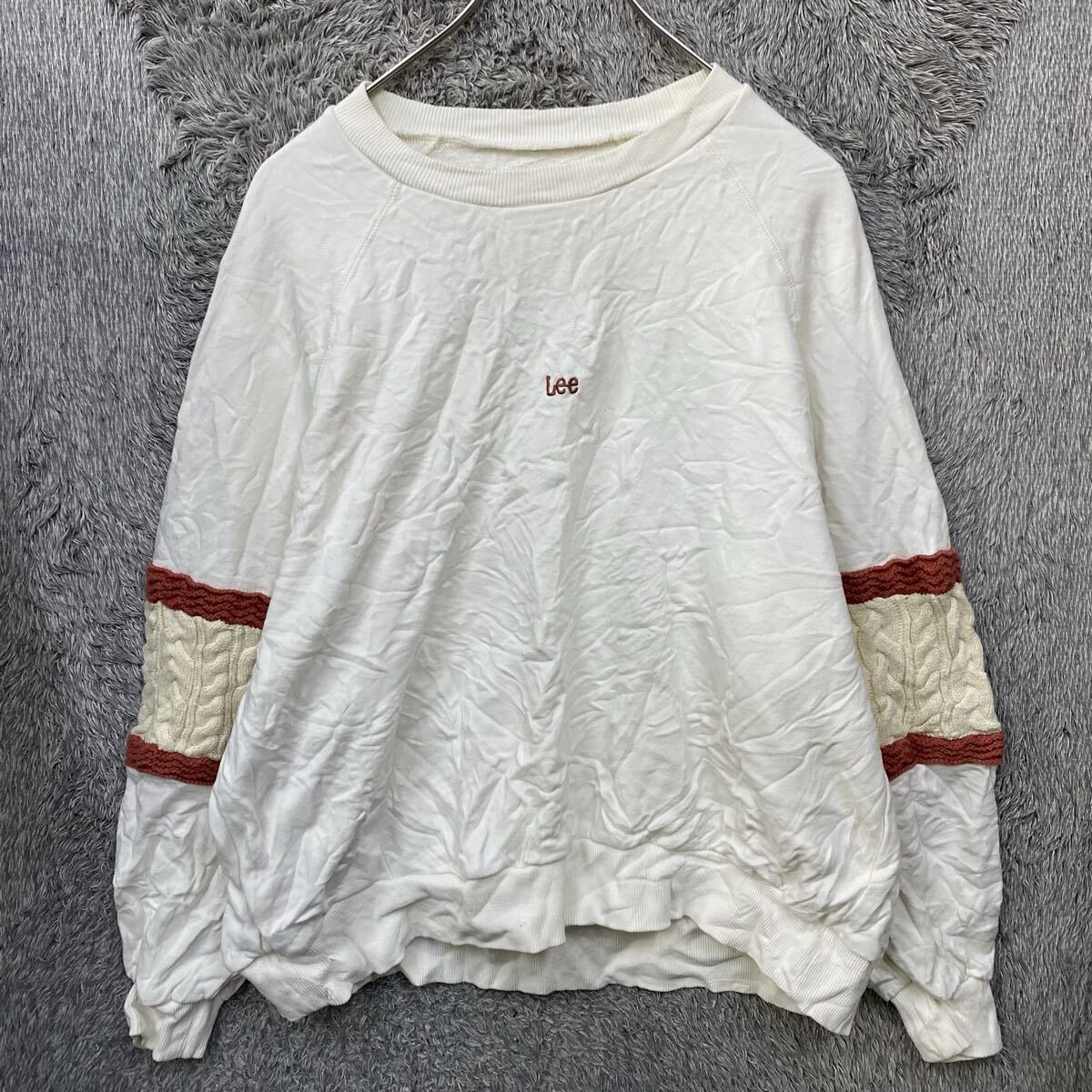 > Lee リー スウェット トレーナー サイズM ホワイト 白 ワンポイント ロゴ刺繍 ニット加工 ハイゲージ レディース トップス 最落なし(751)