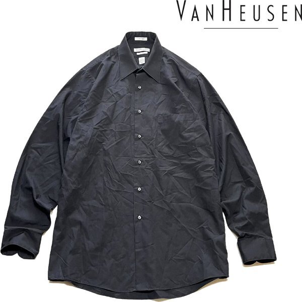 > 1点物◆Van黒バンヒューセン長袖ドレスシャツ古着メンズMLレディースOKアメカジブランド90sストリート中古ブランドUSA無地HEUSEN362097