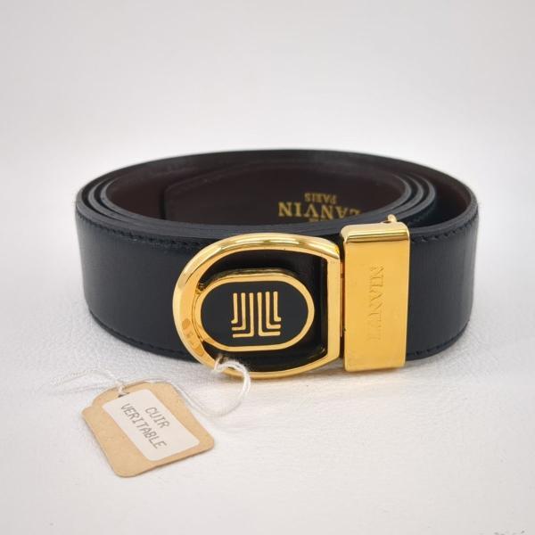 > 未使用品】LANVIN ベルト ブラック レザー ゴールド金具 イタリア製 長さ102〜112cm ランバン ITALY CUIR メンズ 紳士用 ◆2005