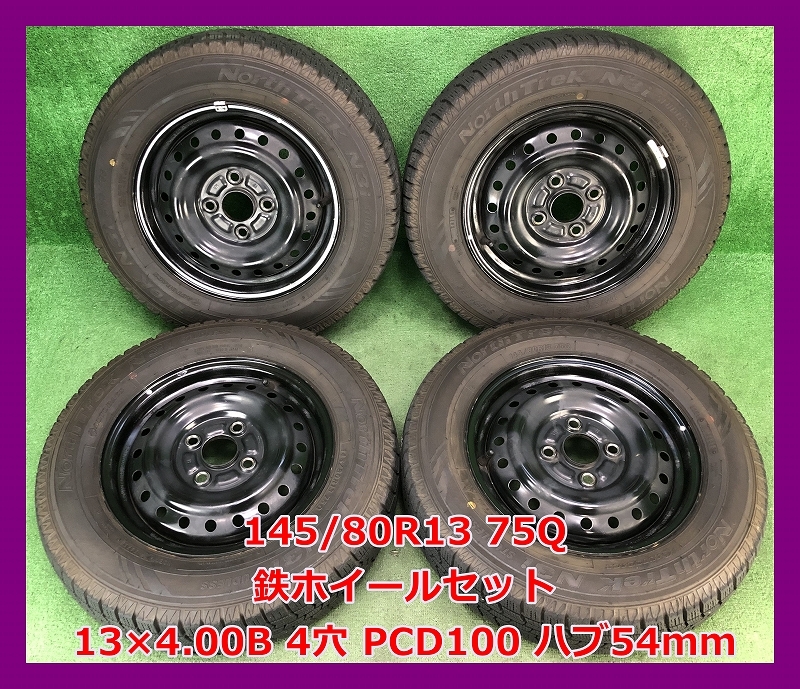> 2018年製 145/80R13 75Q North Trek N3i 中古 スタッドレス/中古 鉄ホイール付き 4本 4穴 PCD100 ハブ54mm
