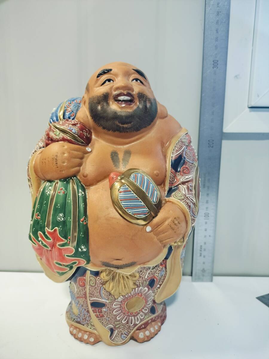 - 九谷焼 布袋様 骨董 陶芸 置物 古美術 七福神 染付金彩 0-1006-04y1m