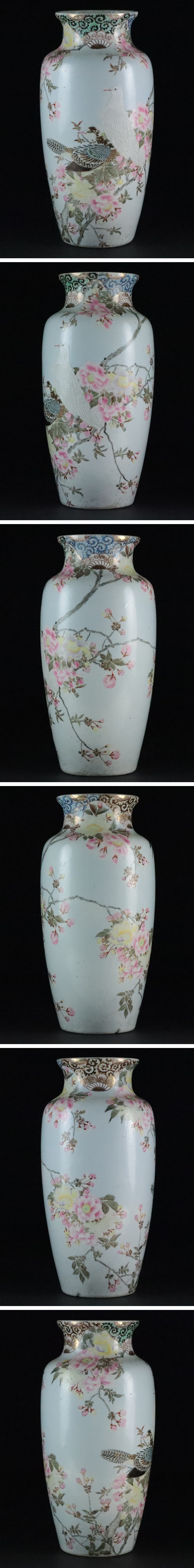- 明治時代 / 尾張 瀬戸 瀬戸焼 金彩 色絵 花鳥図 細密絵付 横濱絵付け 花瓶 / 花器 花入 飾壺 飾壷 / 高さ37cm