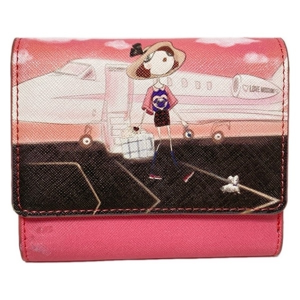 > ラブモスキーノ LOVE MOSCHINO 3つ折り財布/ミニ/コンパクト - ピンク×ダークブラウン×マルチ 財布