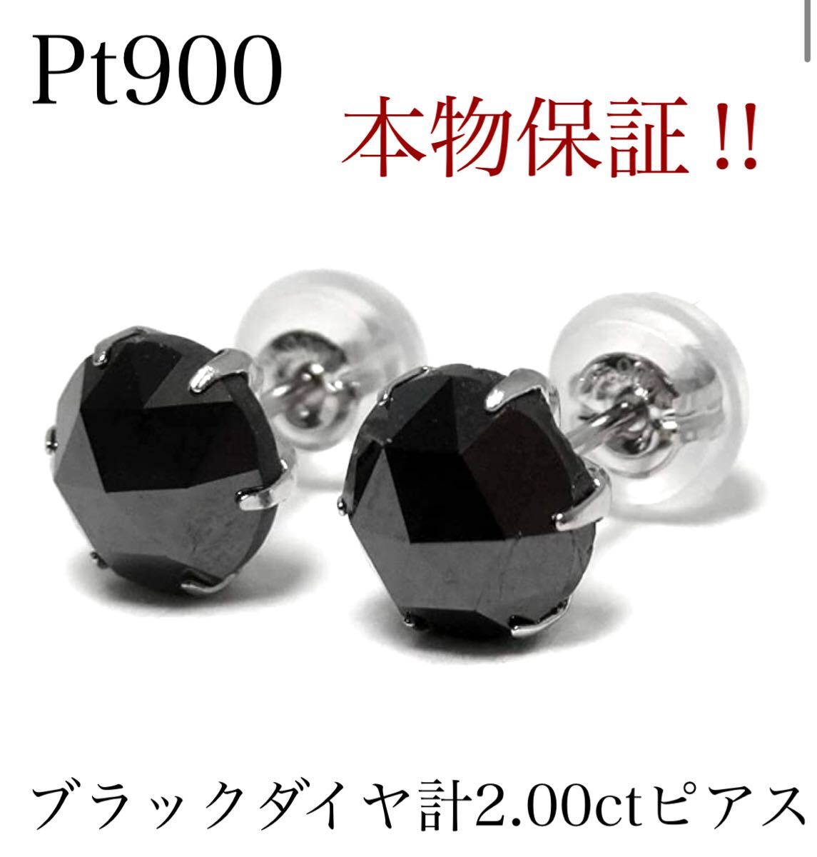 - 【本物保証】Pt900 天然ブラックダイヤモンド 計2.00ct ピアス|各1.00ct刻印|鑑別カード付 スタッドピアス プラチナ 新品