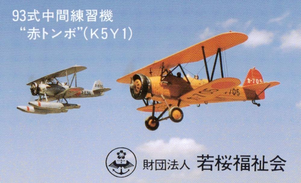 - ★93式中間練習機 赤トンボ(K5Y1) 若桜福祉会★テレカ50度数未使用de_171