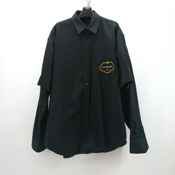 > バレンシアガ ワークシャツ SIZE 38 ブラック ロゴ ダブルスリーブシャツ メンズ 古着 BALENCIAGA 中古 ◆2015