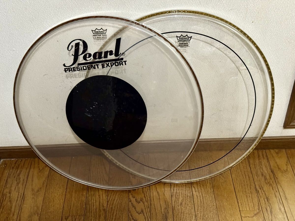 - ☆REMO/レモ製ヘッド 24''バスドラム用2枚セット/希少!Pearl PRESIDENT EXPORTロゴ入りCS&ピンストライプ