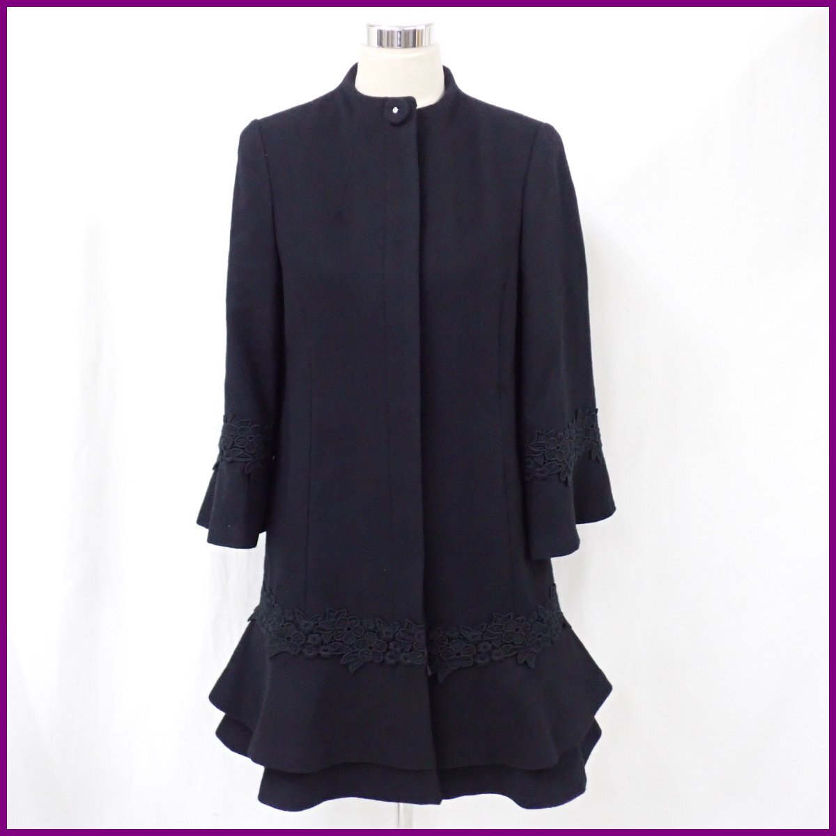 - ★美品 M'S GRACY/エムズグレイシー ノーカラーコート 40/レディースM相当/ブラック/ウール100%/花柄レース/フリル&2052900147