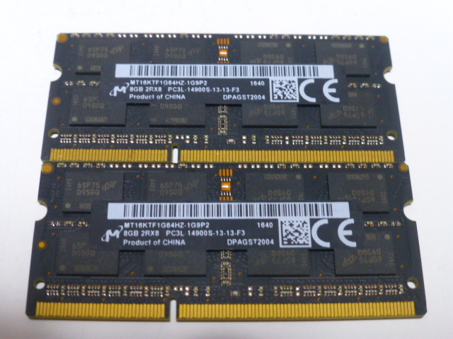 > ノートパソコン用メモリ 両面チップ Micron 低電圧 1.35V DDR3L-1866 PC3L-14900S 8GBx2枚 合計16GB 起動確認済みです①
