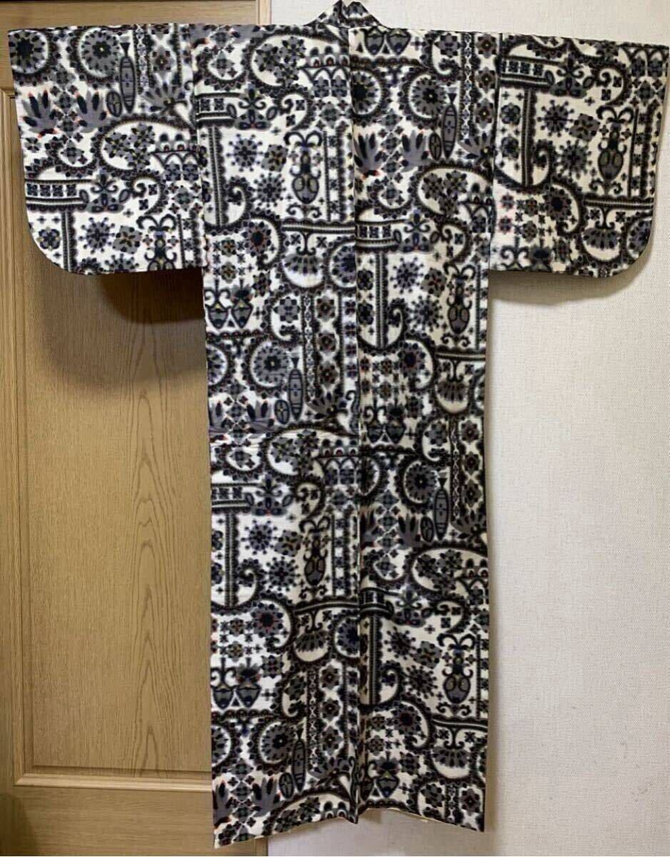 - 銘仙柄 アンティーク 着物 大正ロマン お洒落着 袷 身丈154㎝ 正絹 着用用 リメイク用 大正浪漫 昭和レトロ 和服 おしゃれ クラシカル