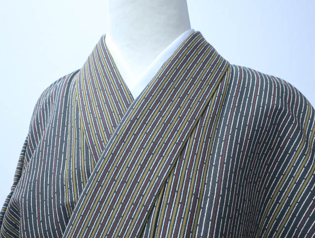- 《京都一輝堂》【着物】小紋 洗える着物 縦縞文 しつけ付 残布付 身丈約161.5cm 裄丈約64cm 24Z-1583