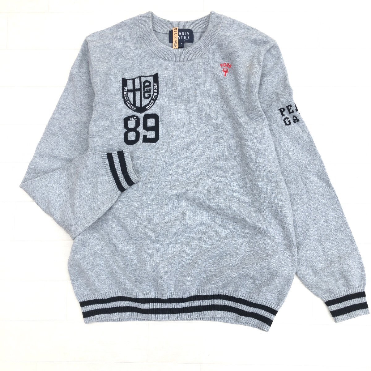 - 美品 PEARLY GATES パーリーゲイツ ロゴ刺繍 コットンニット ゴルフセーター 0 グレー 長袖 ゴルフウェア 国内正規品 レディース 女性用