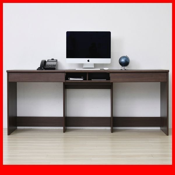 > 机★ワイドデスク W180/ワークデスク オフィスデスク パソコンデスク システムデスク/配線収納 大容量の引き出し収納 背面化粧/ブラウン/a1